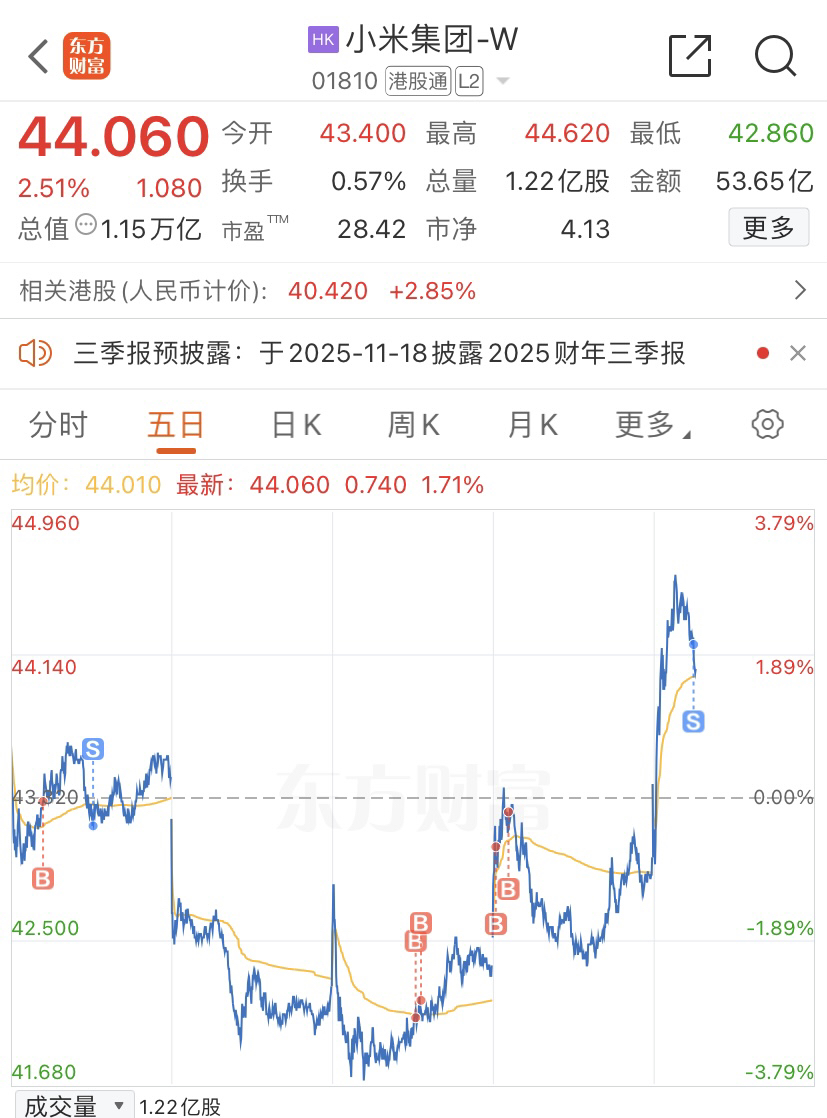$小米集团-W(HK|01810)$ 清了,打野成功,今天低到41我还会买