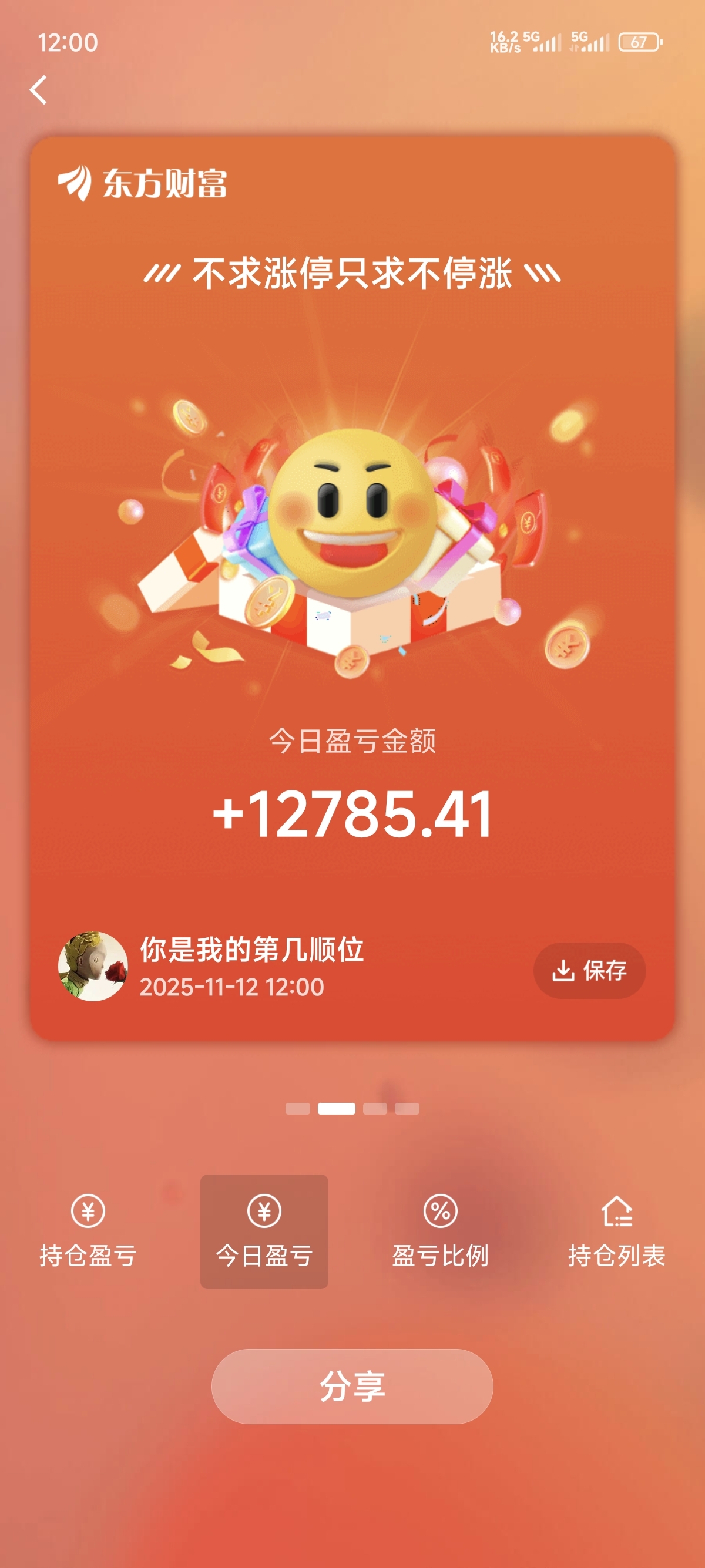 顺顺今天不亏钱,这个11月白玩11月才盈利不到两万。我早盘还盈利4万呢,现在只有