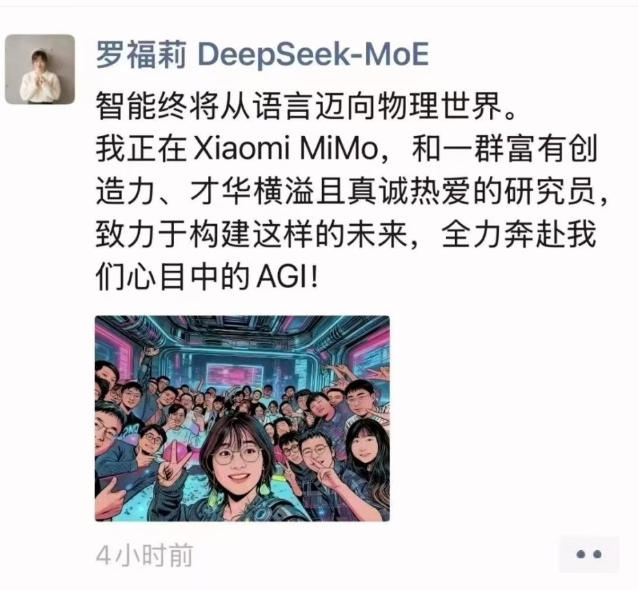 低调的时候很低调,高调的时候很高调!劲爆消息,原deepseek研究员罗福莉自宣加盟小米!负责小米mimo大模型开发,从2月的“让我好好做事”到现在高调自媒体自宣!小米从来不会错过这种高调的机会。