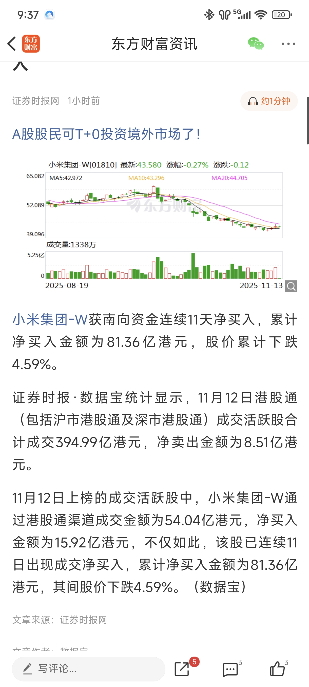 $小米集团-W(HK|01810)$ 港股通的散户在过去的11日购买了80亿,这11天小米下跌了百分之4说明海狗在做空小米