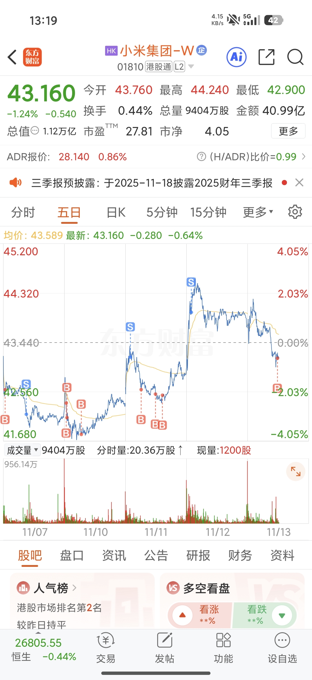 $小米集团-W(HK|01810)$ 这几天操作感觉还可以