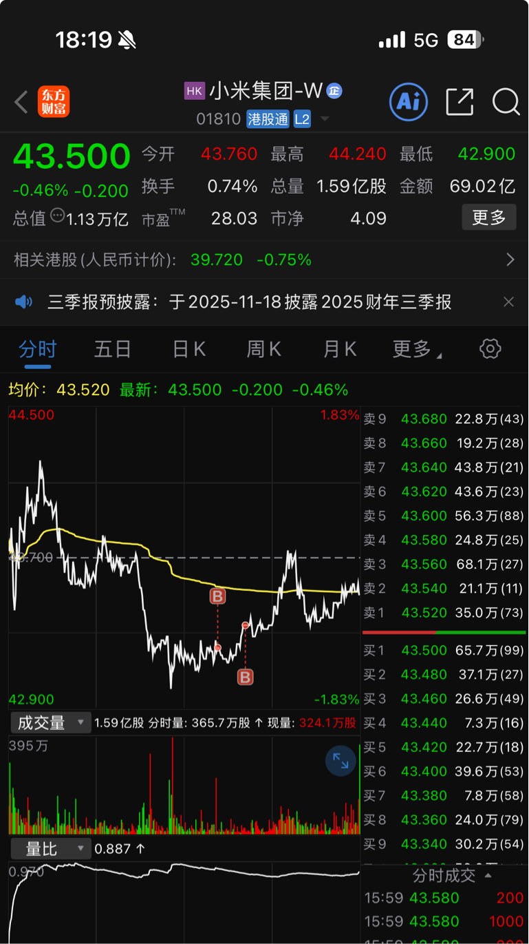 $小米集团-W(HK|01810)$ 三季报不出我估计不会爆拉的,但慢慢吸筹还是有必要的。