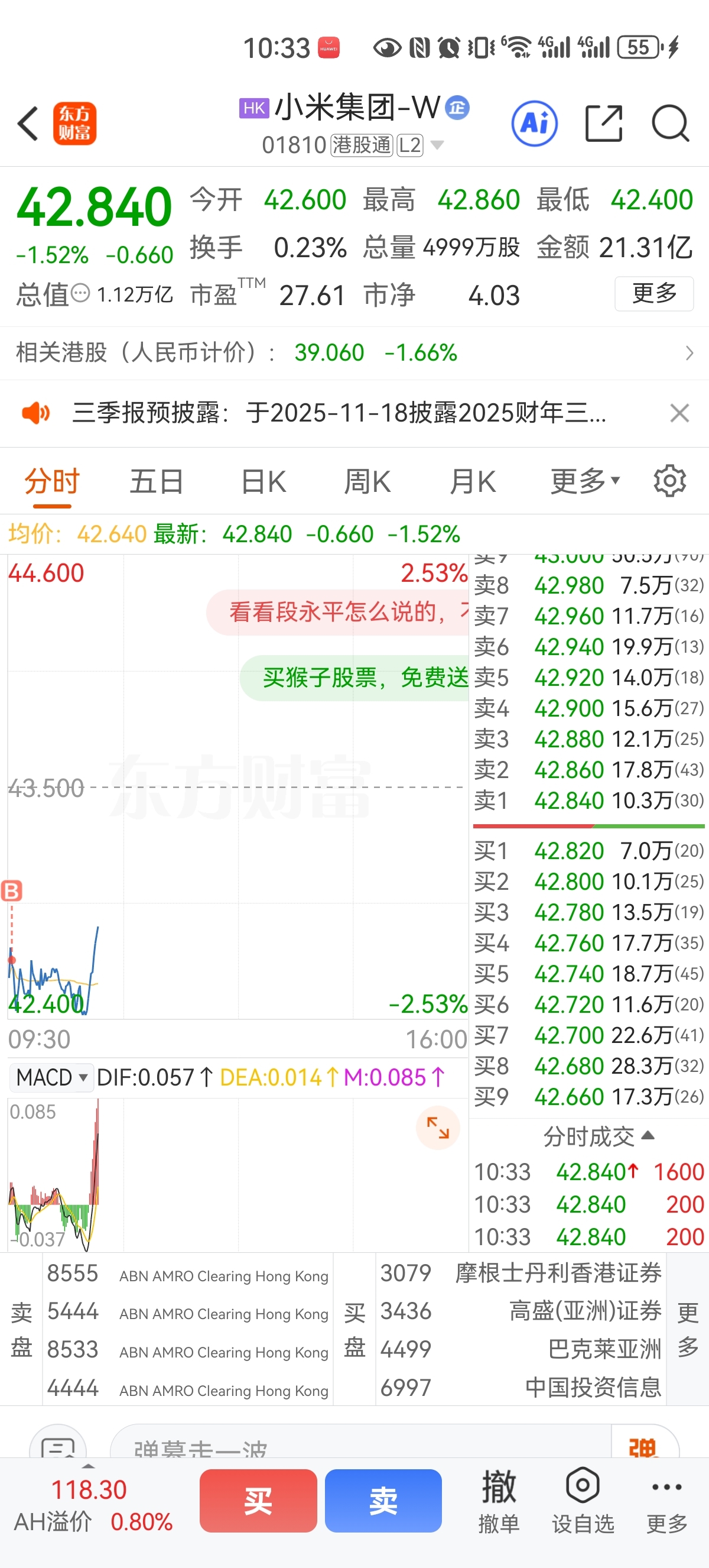 $小米集团-W(HK|01810)$ 冲啊冲啊