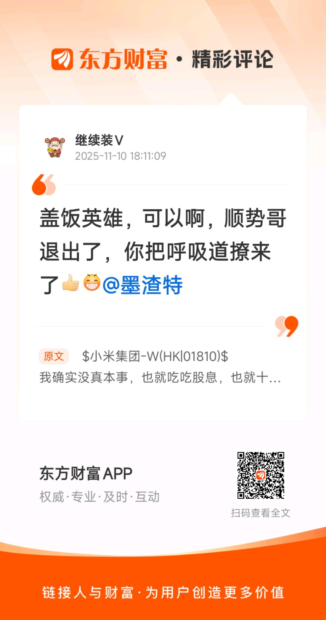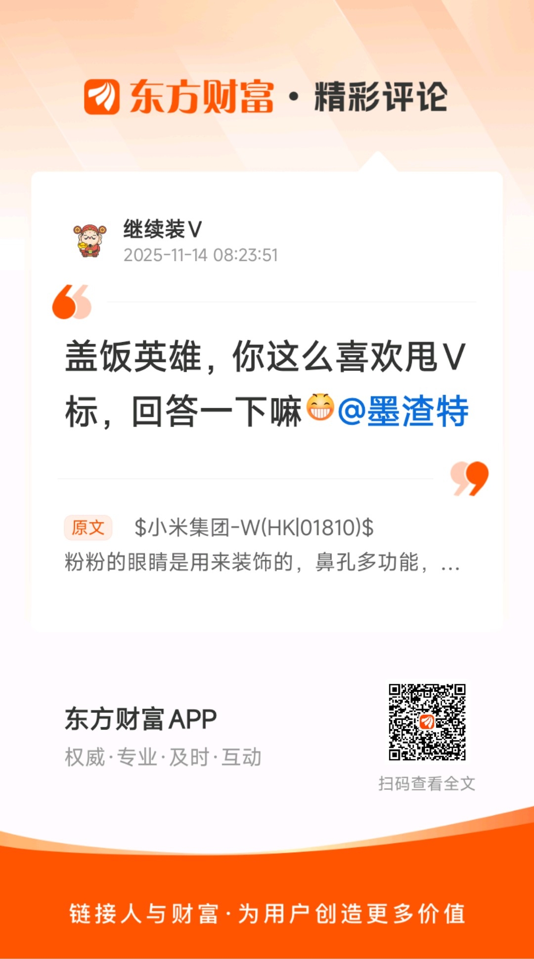 $小米集团-W(HK|01810)$怂到这样,哪像之前的盖饭英雄,组队才敢吭声。盖饭英雄,可以把你帖子评论开放吗?