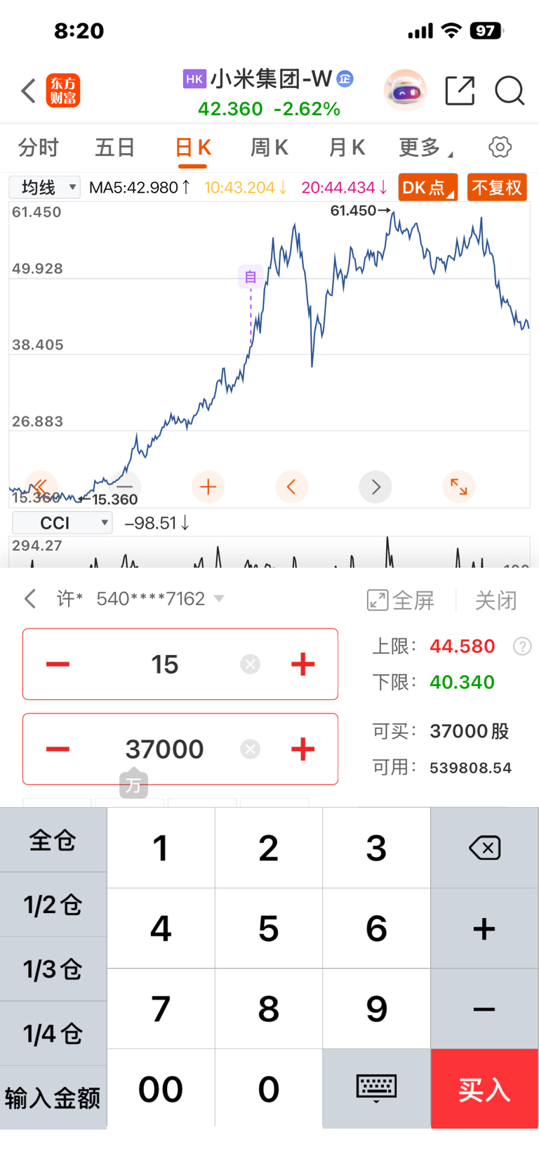 $小米集团-W(HK|01810)$ 已经挂单了,希望星期一别让我失望!