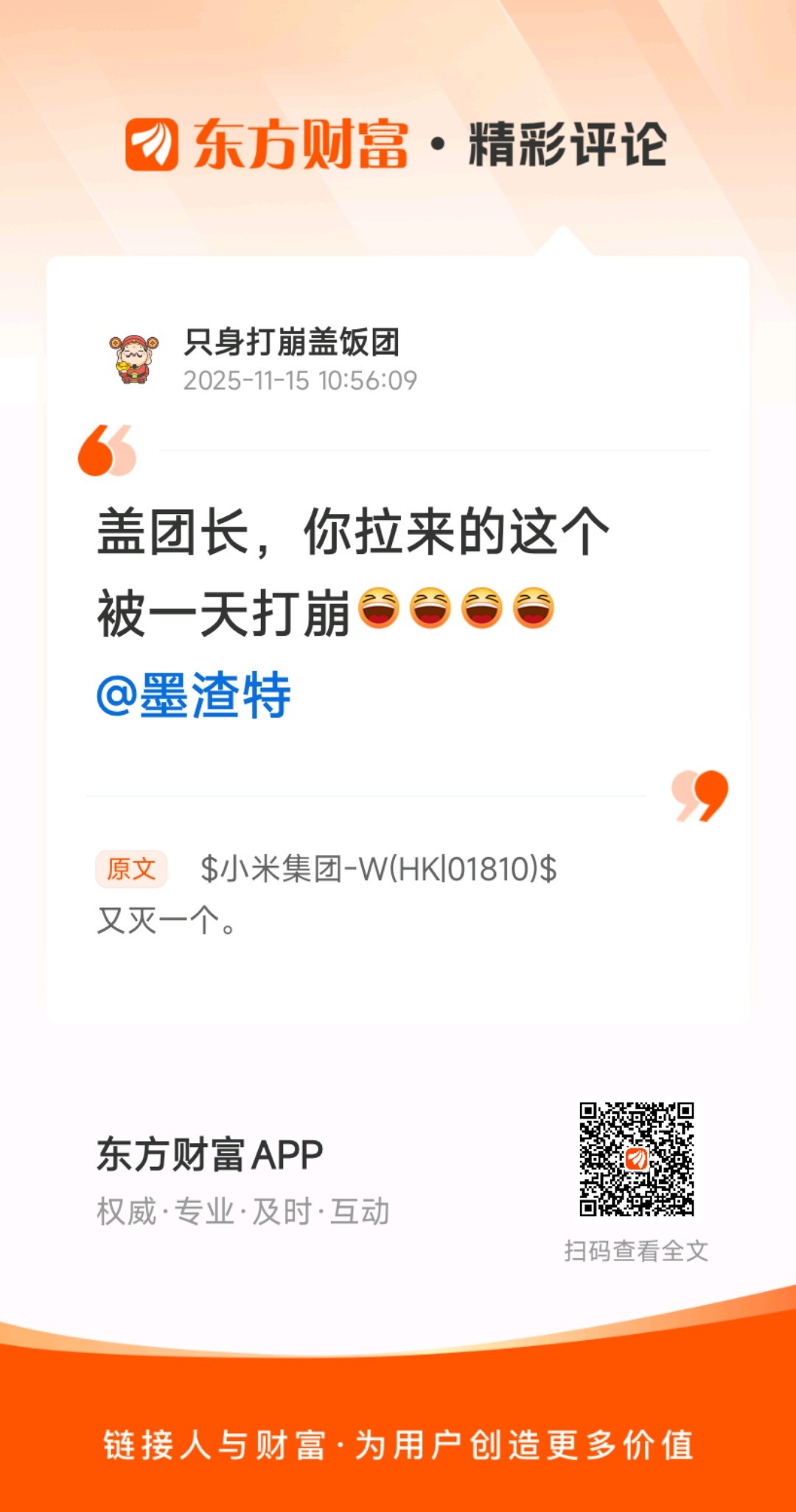温馨提示: 1.根据《证券法》规定,禁止编造、传播虚假信息或者误导性信息,扰乱证券市场;2.用户在本社区发表的所有资料、言论等仅代表个人观点,与本网站立场无关,不对您构成任何投资建议。用户应基于自己的独立判断,自行决定证券投资并承担相应风险。《东方财富社区管理规定》