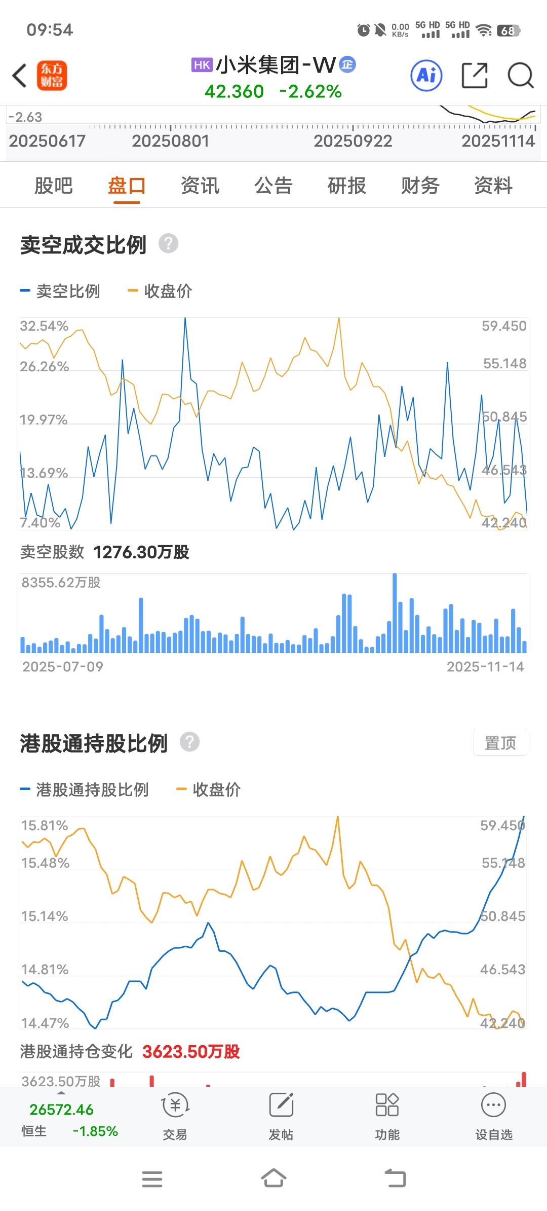 $小米集团-W(HK|01810)$ 卖空比例降下来了?