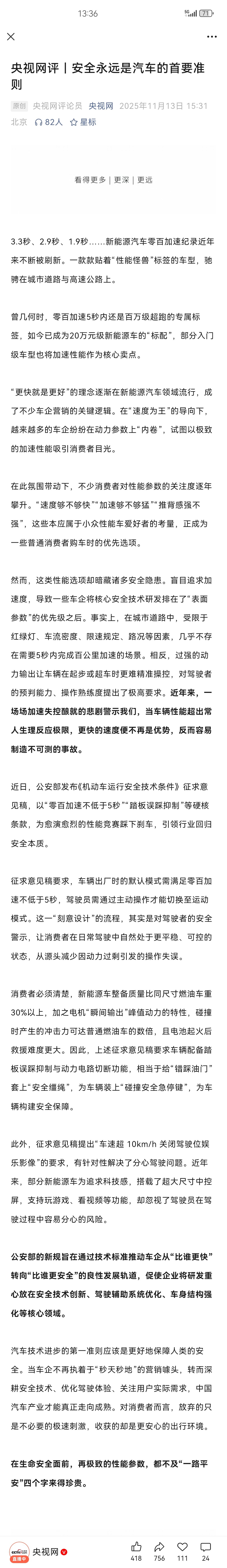 11月13日,央视网评|安全永远是汽车的首要准则句句不提米,说的全是米