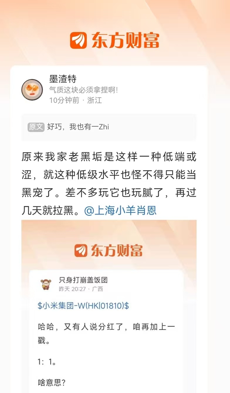 温馨提示: 1.根据《证券法》规定,禁止编造、传播虚假信息或者误导性信息,扰乱证券市场;2.用户在本社区发表的所有资料、言论等仅代表个人观点,与本网站立场无关,不对您构成任何投资建议。用户应基于自己的独立判断,自行决定证券投资并承担相应风险。《东方财富社区管理规定》