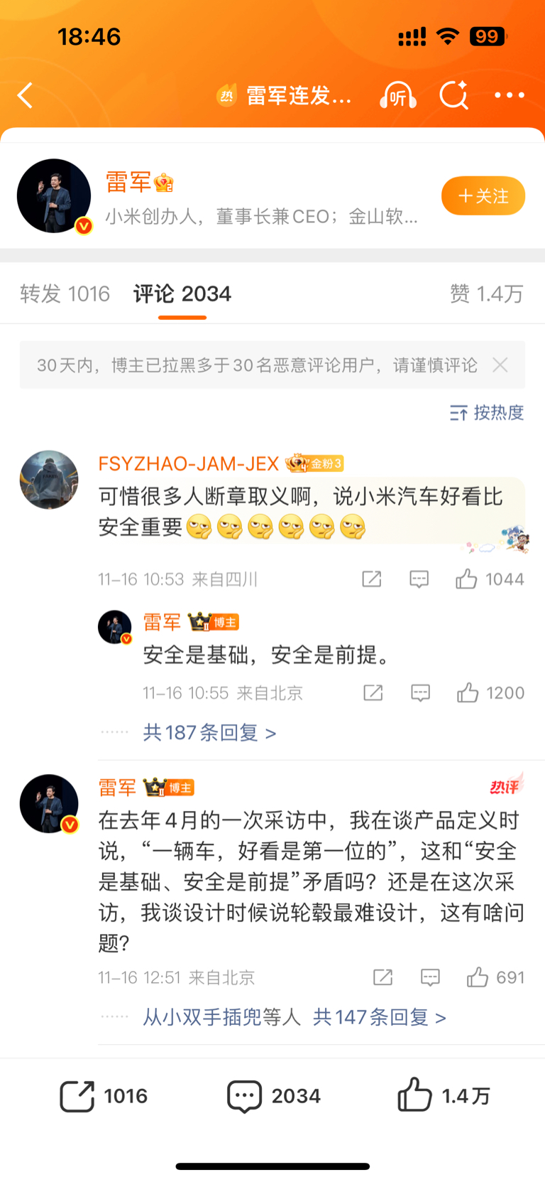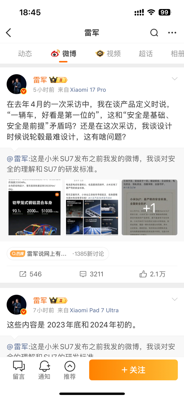 从晒证据、亮态度到重申安全理念,雷军的多条博文没有华丽辞藻,只有实打实的回应。这场“温和者的愤怒”,让我们看到了企业家对产品的坚守、对信任的珍视。正如网友所言:“不是雷总变了,是底线不能破,守护品牌就该这样较真。”而这场风波也再次印证,任何靠断章取义制造的谣言,终究抵不过事实的力量。