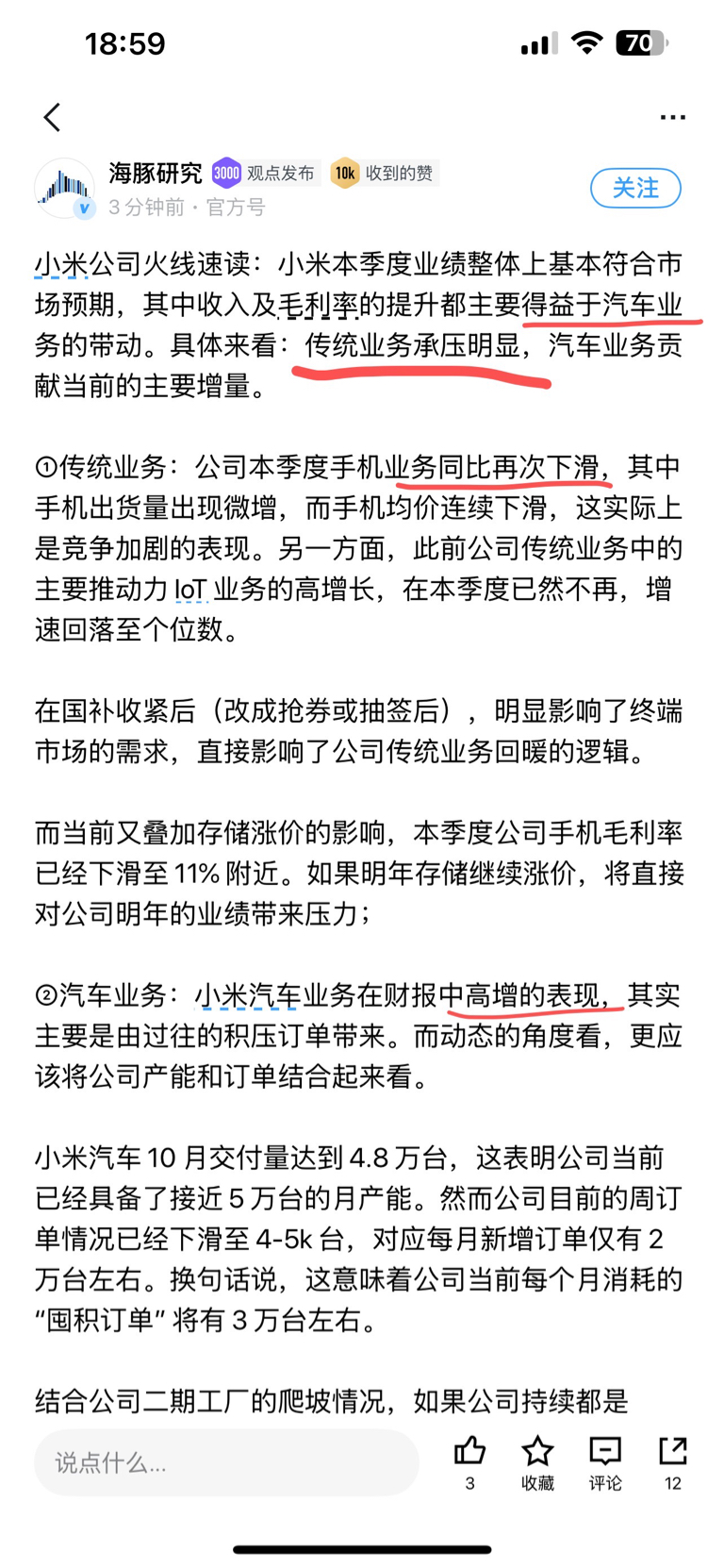 小米继续看跌,目前口碑崩塌的业务带来的业绩增速,在之后根本没看点了,没有预期了