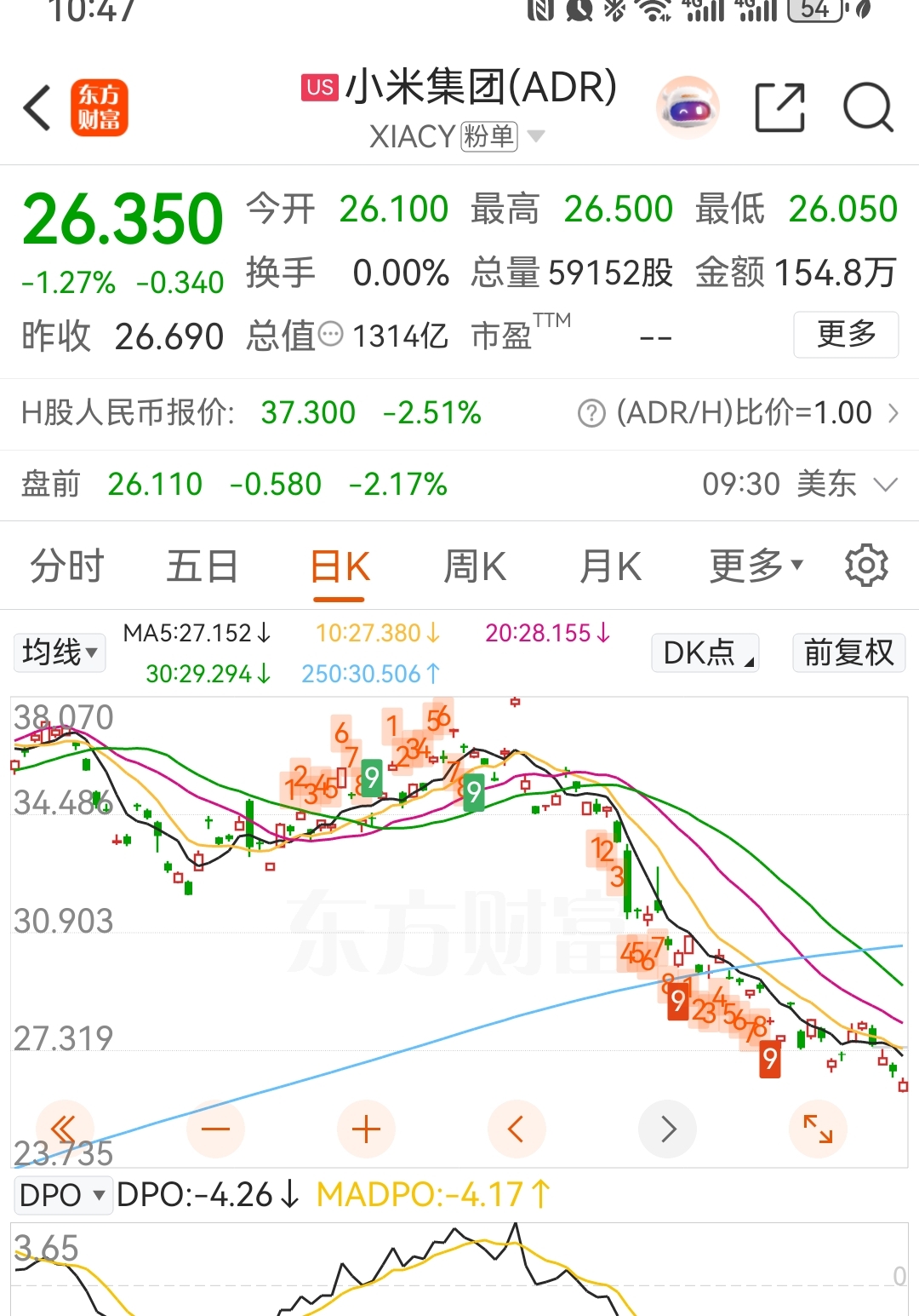 小米业绩出来,美股粉单盘前又是下跌。小米业绩一年增长率不足以股价翻了那么多倍。小