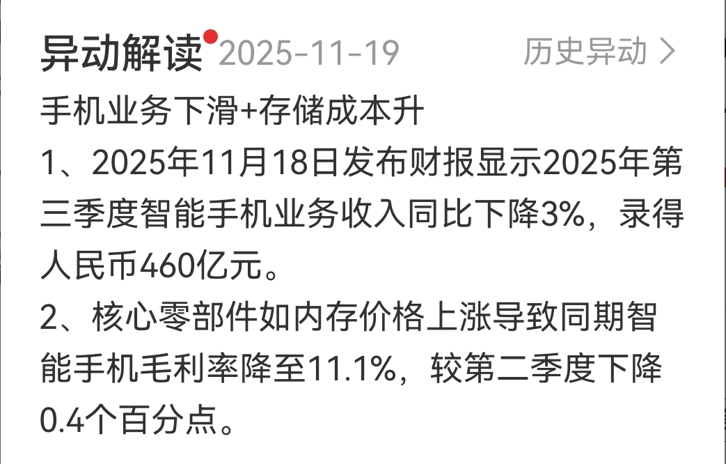 $小米集团-W(HK|01810)$ 昨天小米集团-W发布三季报,我看全是利好消息。搞不懂今天股票为什么会大跌?AI告诉我是这样子的。感兴趣的同学们转过头来看一看。