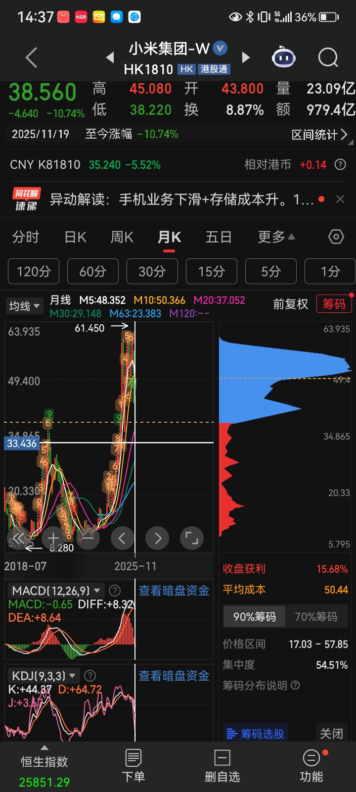 $小米集团-W(HK|01810)$ 前高33支持,小钱看进去搏一搏