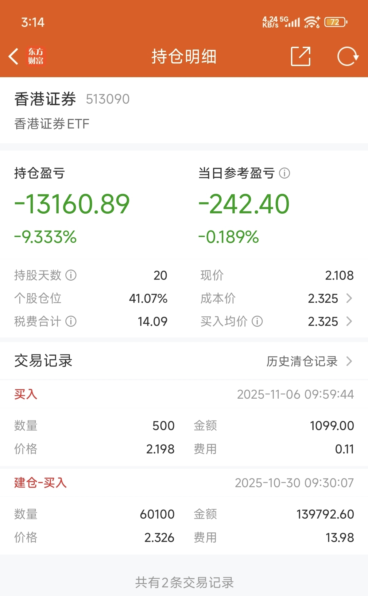 ps:这个账户遵循的是不解套不离场的原则,择时能力等于零,只能选择时间做朋友,大不了设置条件单,然后删软件。