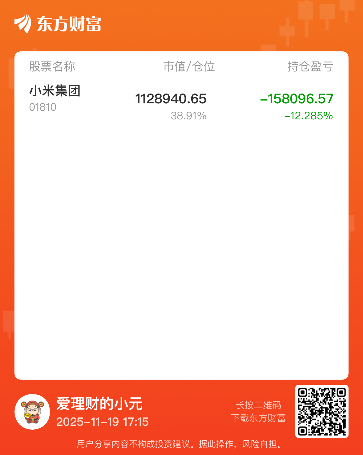 $小米集团-W(HK|01810)$ 暴跌原因之一