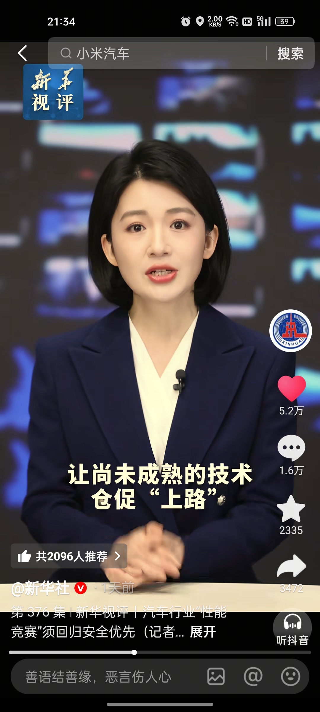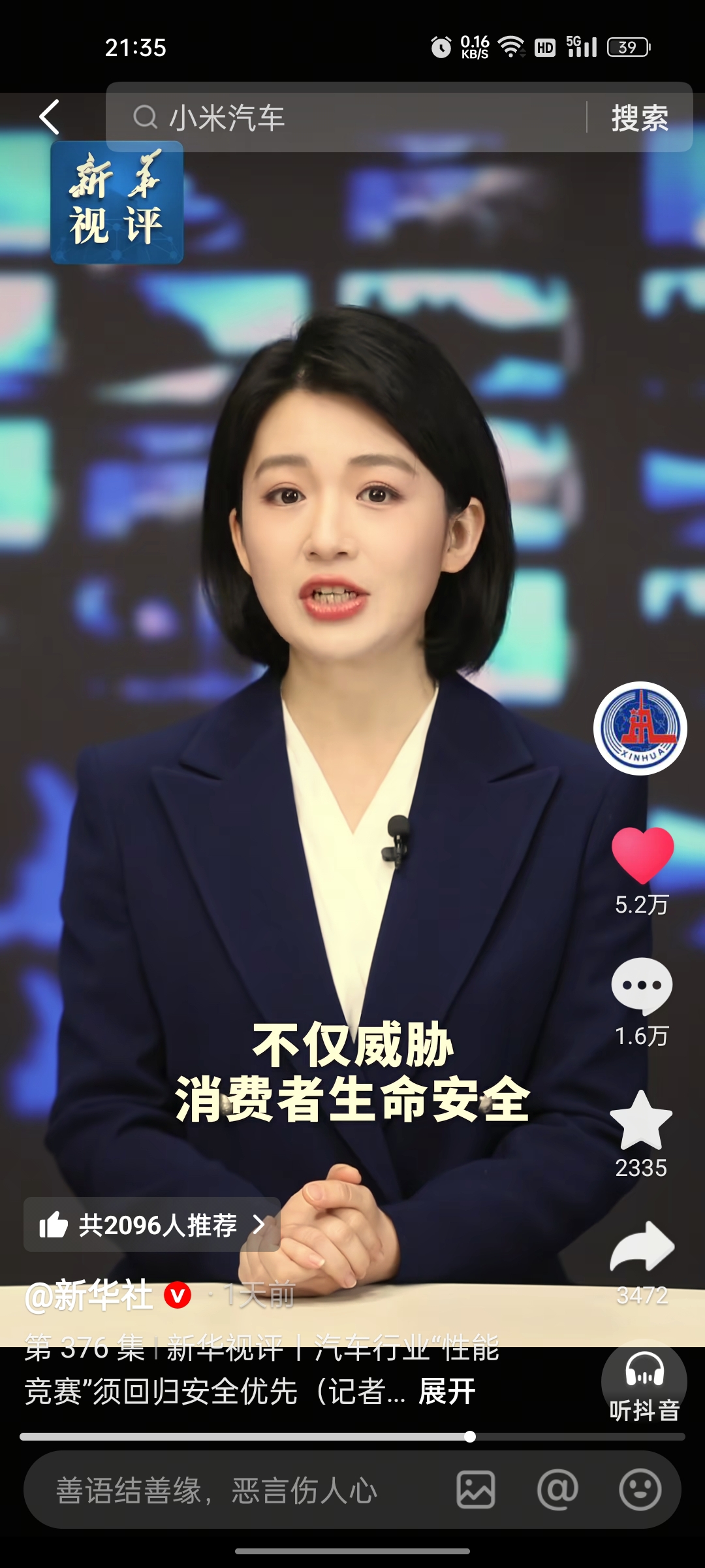 看看昨天新华社评论:性能竞赛,须回归安全优先