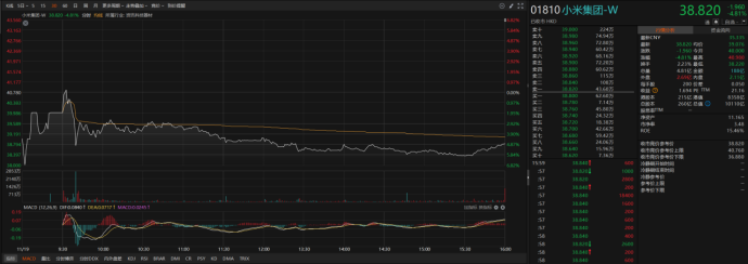 11月19日,港股小米集团-W(01810.HK)在披露超预期第三季度财报后,股价未如市场预期走强,反而出现显著下跌,单日跌幅达4.81%,收报38.82港元,正式失守40港元关键心理关口,总市值回落至万亿港元边缘。