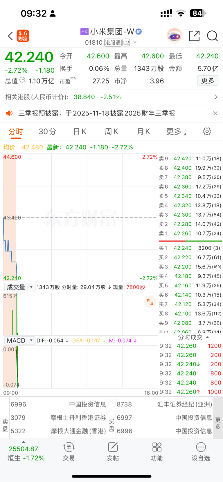 那时候还没发财报股价45左右竞价时段42没人信他会真的42结果真的低于了42