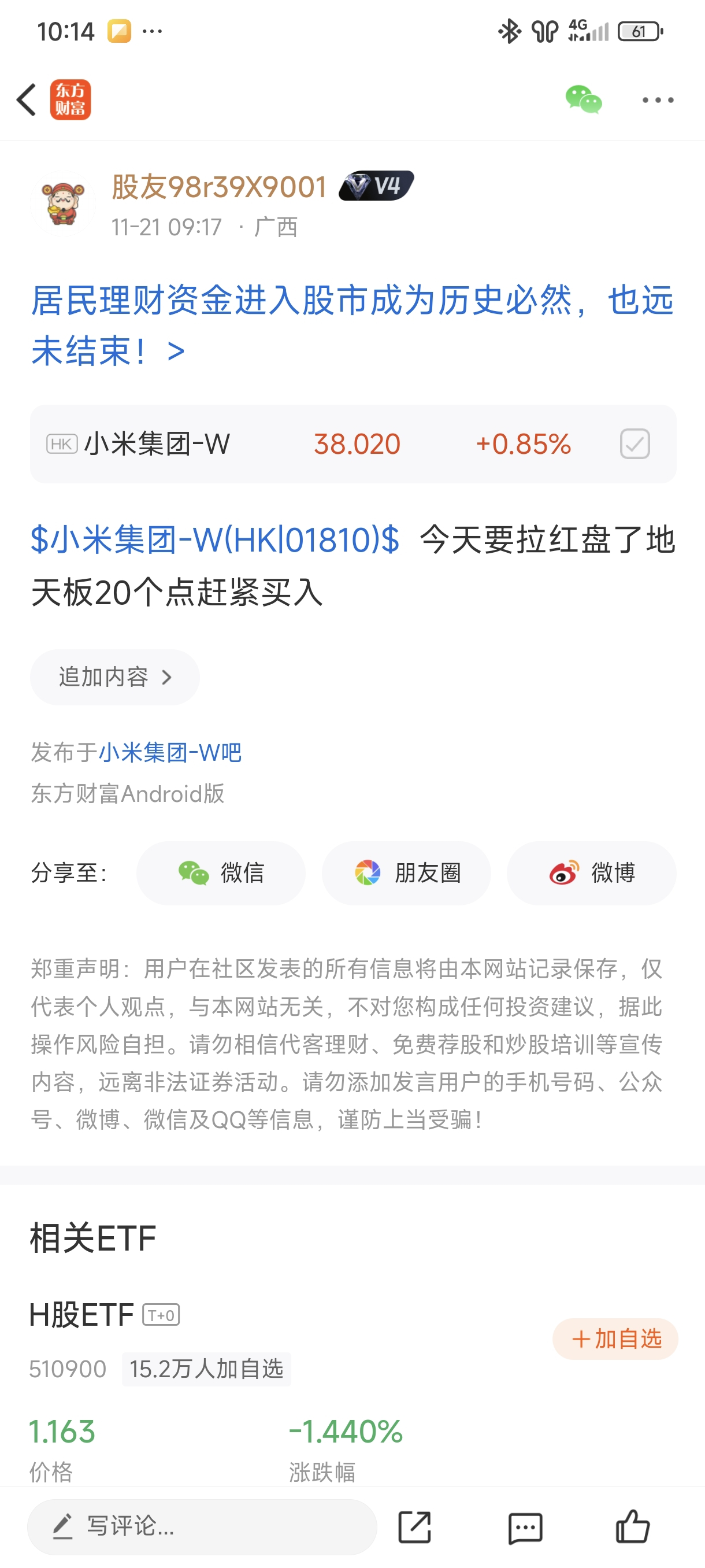 $小米集团-W(HK|01810)$ 竞价我都知道开盘要拉红了可惜我买不了港股
