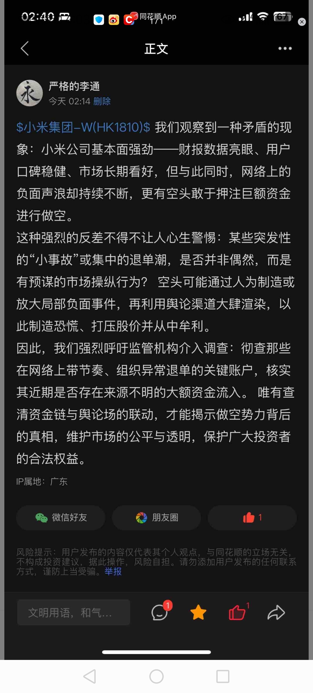 温馨提示: 1.根据《证券法》规定,禁止编造、传播虚假信息或者误导性信息,扰乱证券市场;2.用户在本社区发表的所有资料、言论等仅代表个人观点,与本网站立场无关,不对您构成任何投资建议。用户应基于自己的独立判断,自行决定证券投资并承担相应风险。《东方财富社区管理规定》