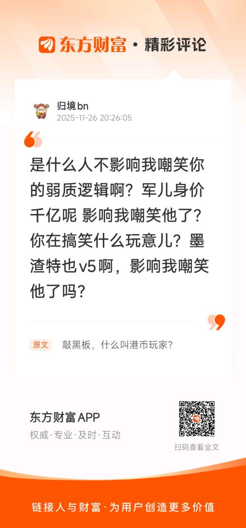 //@归境bn :是什么人不影响我嘲笑你的弱质逻辑啊?军儿身价千亿呢 影响我嘲笑他了?你在搞笑什么玩意儿?墨渣特也v5啊,影响我嘲笑他了吗?