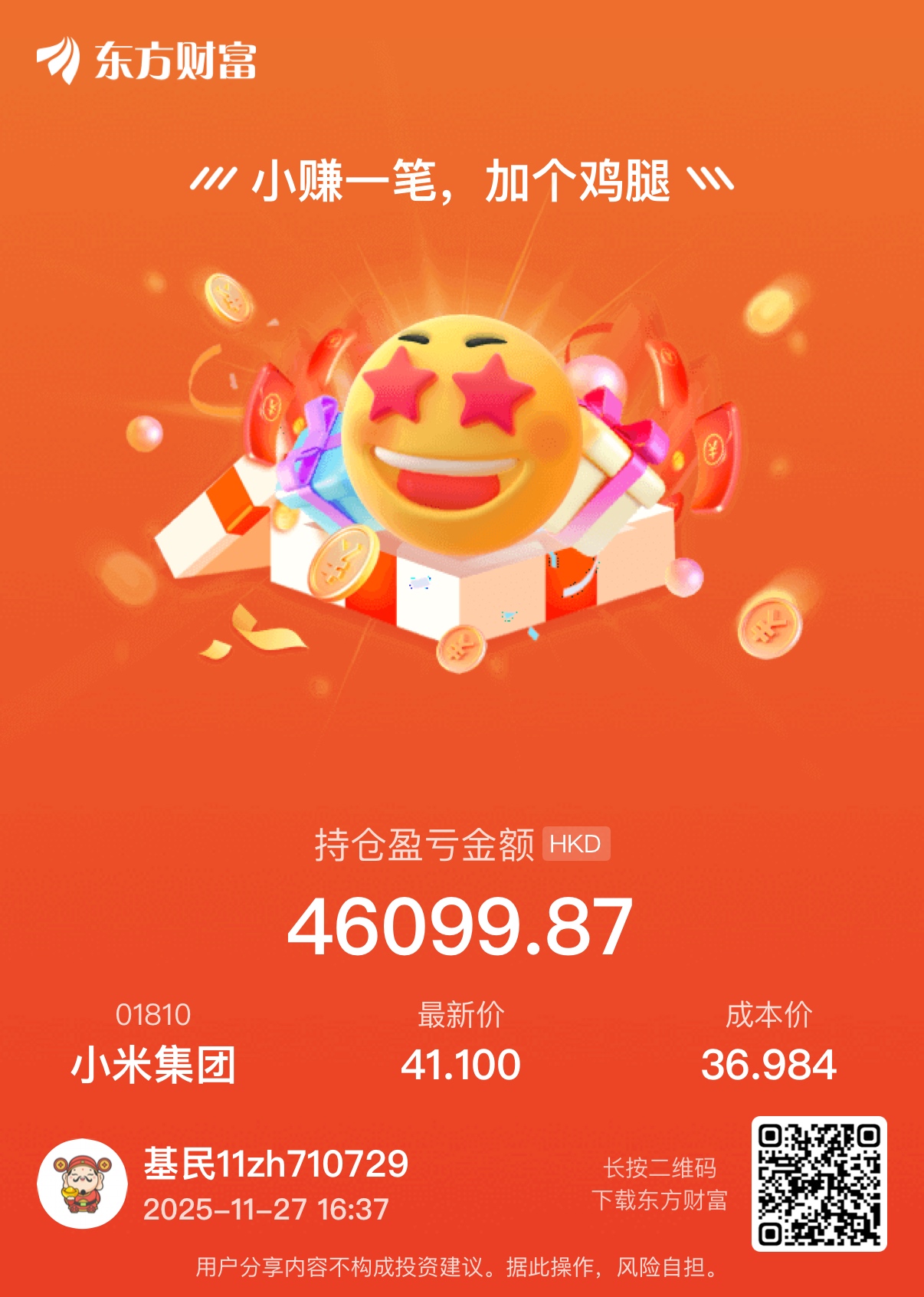 $小米集团-W(HK|01810)$ 不好意思,气死小黑子,我这才半仓