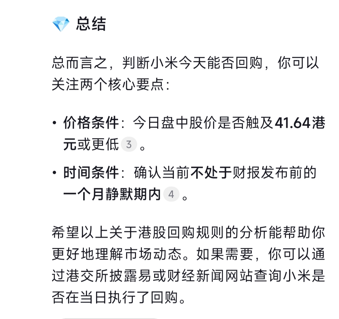 $小米集团-W(HK|01810)$ 今日回购价41.64元以下
