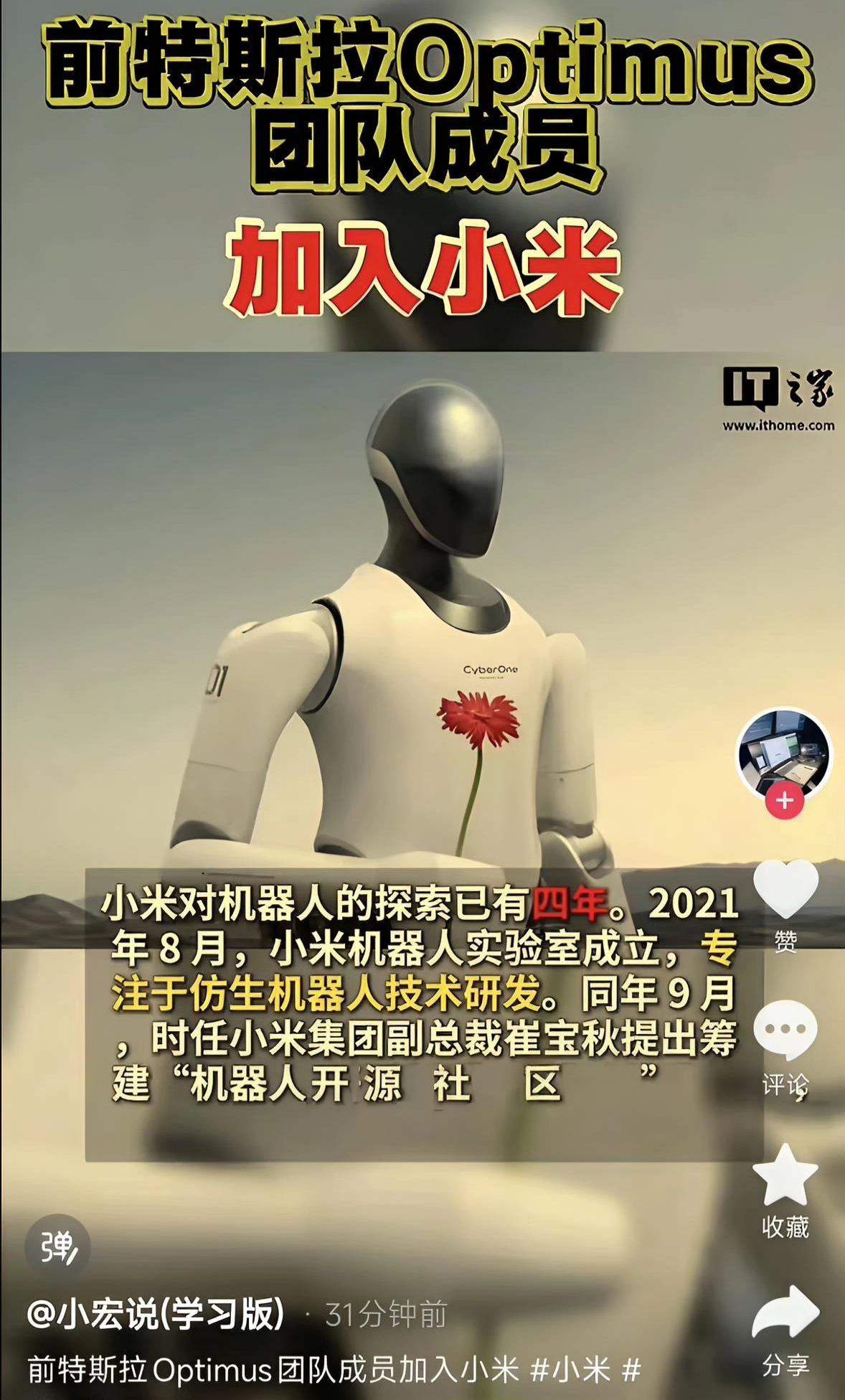 前特斯拉机器人Optimus团队人才跳槽小米!这波操作要搞大事?懂行的都知道,特