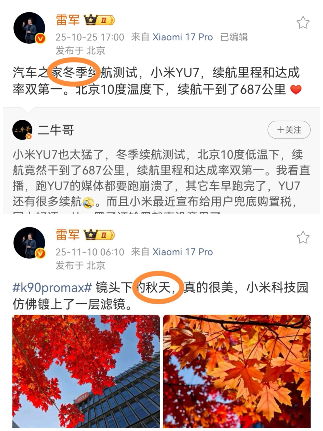 雷军∶重新“定义”秋冬!10月25日,冬季。11月10日,秋天。能说是九年义务的