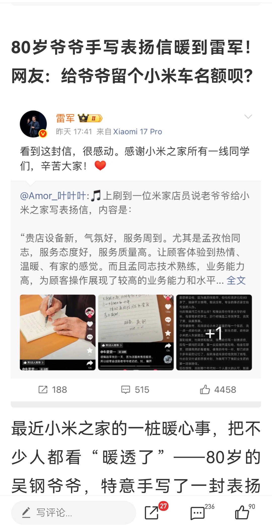 前有7岁毛毛哭着要吃西贝,现有80岁爷爷手写信感谢小米。好的创意总是心有灵犀