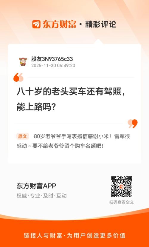 八十岁的老头买车还有驾照,能上路吗? 我在《80岁老爷爷手写表扬信感谢小米!雷军很感动~要不给老爷爷留个购车名额吧!》的评论获得了大家的关注。