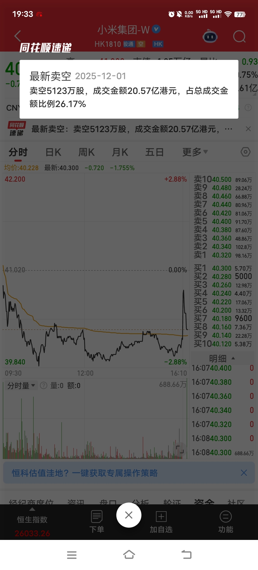 $小米集团-W(HK|01810)$ 空头太疯狂了!20多亿做空才砸盘了这么点