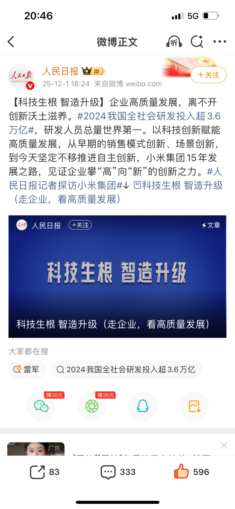 $小米集团-W(HK|01810)$ 人民日报站台小米 米粉们 雄起 支持雷总 团结起来 干爆空头黑子