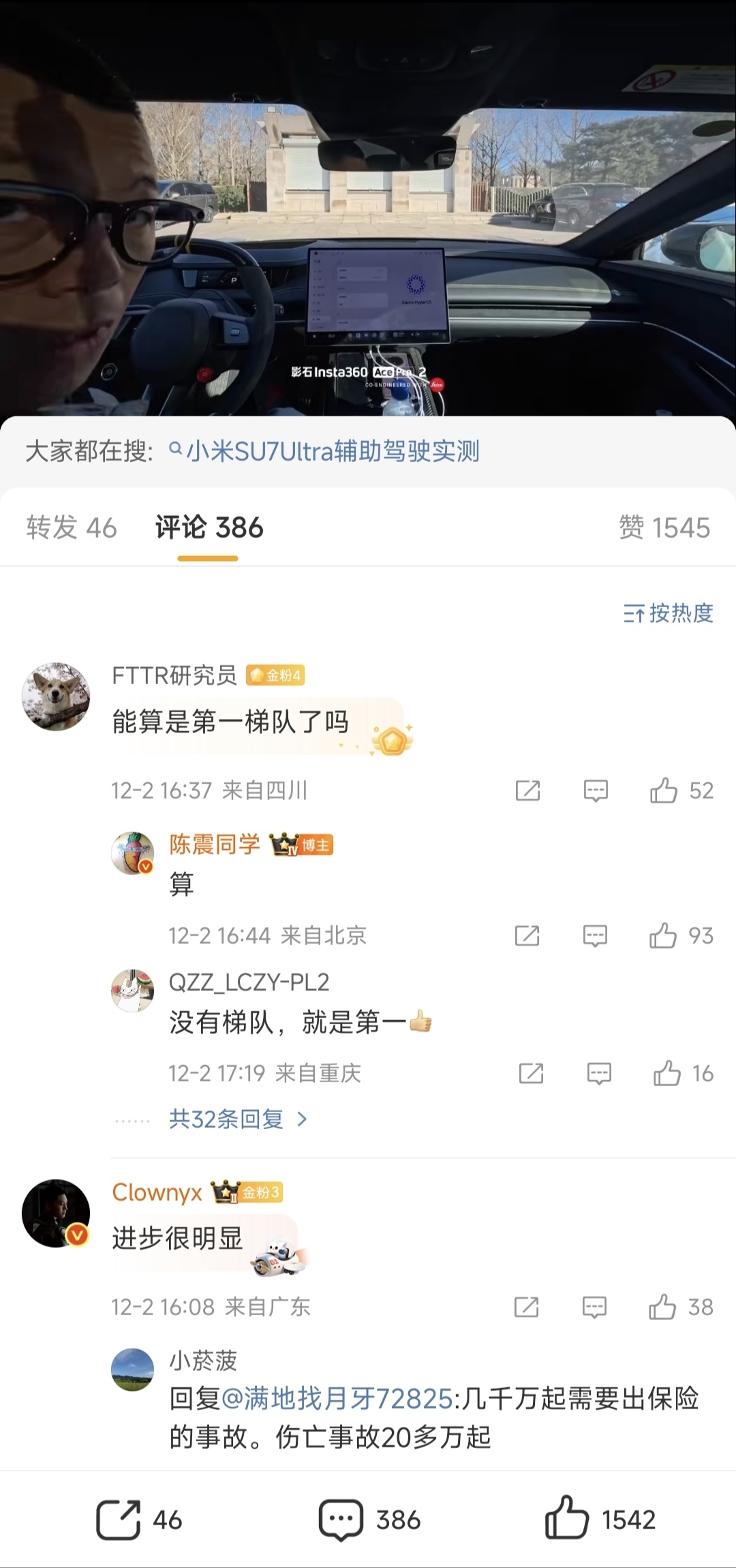 $小米集团-W(HK|01810)$ 刘璐老师认证小米辅助驾驶第一梯队