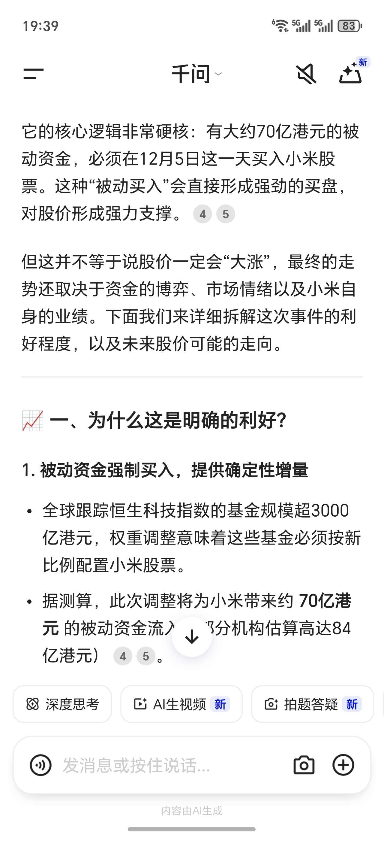 $小米集团-W(HK|01810)$ 12月5日,小米权重从5.67%升至8%,意味着基金必须按比例增持小米股票。