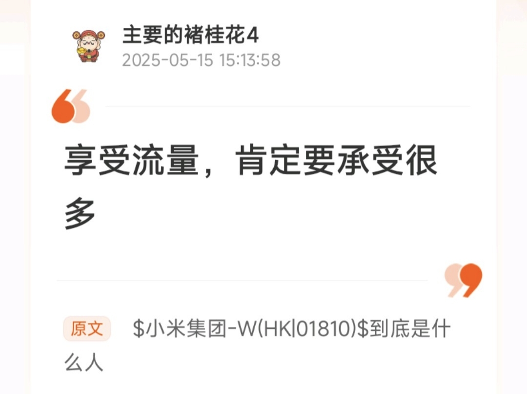 四年七个月了,你的万华还好吗,亲?(爱的黑子战友)$小米集团-W(HK|01810)$