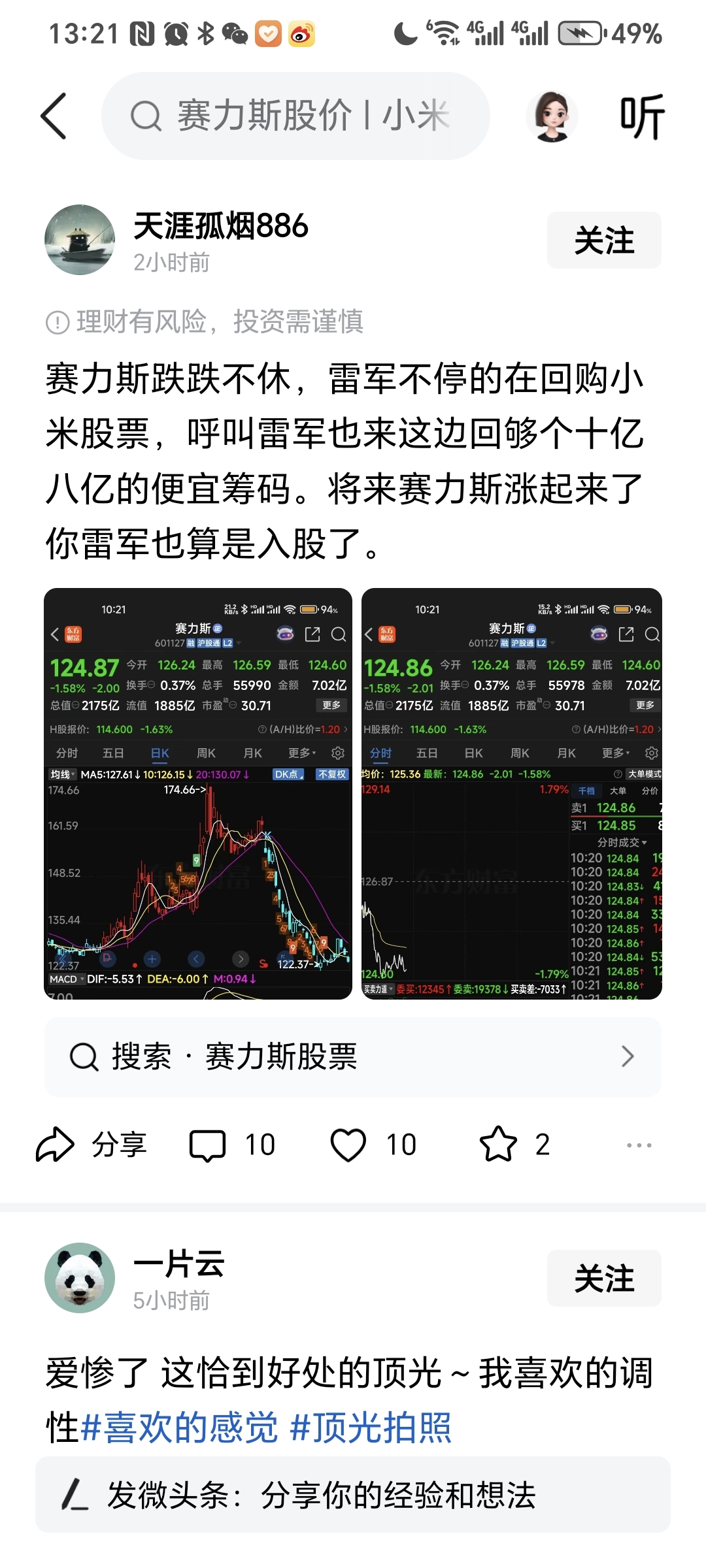 $小米集团-W(HK|01810)$ 有网友建议雷总买现在的赛力斯,股价不高。