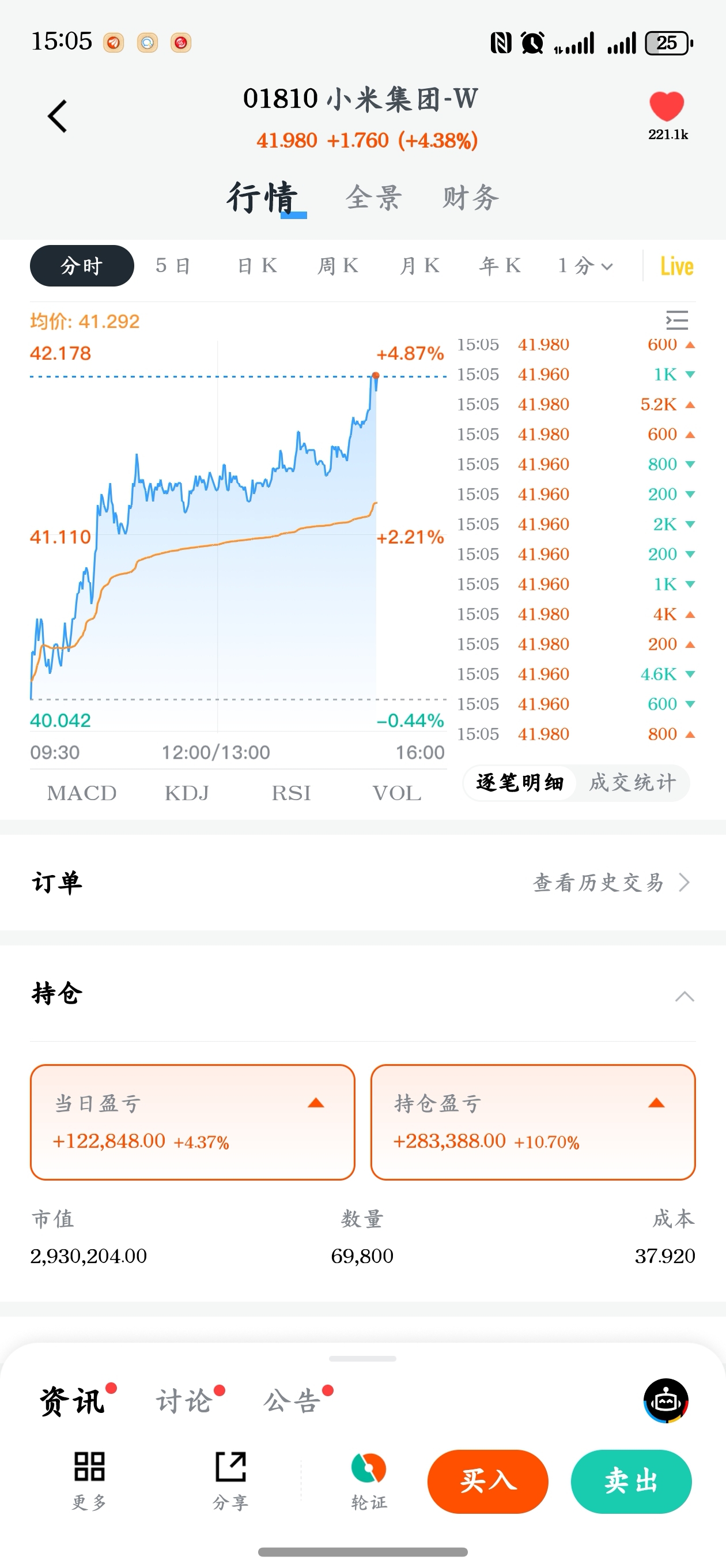 不说了雷总,明天上午开盘后冲高卖出然后提车!