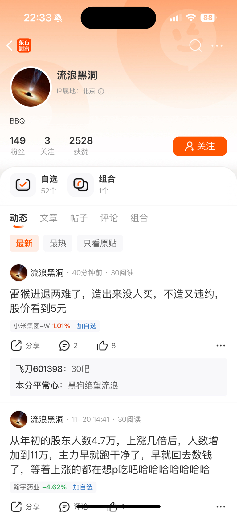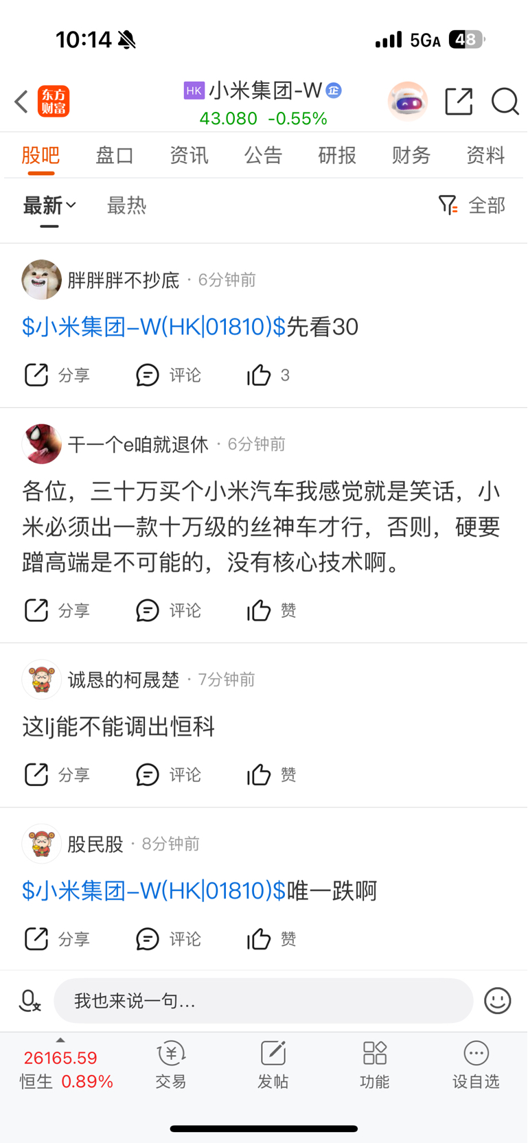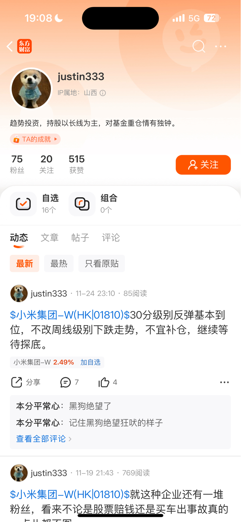 $小米集团-W(HK|01810)$ 看今天没有黑子,那我找几个出来,把他们鞭shi一下,也给大家出出气…娱乐一下