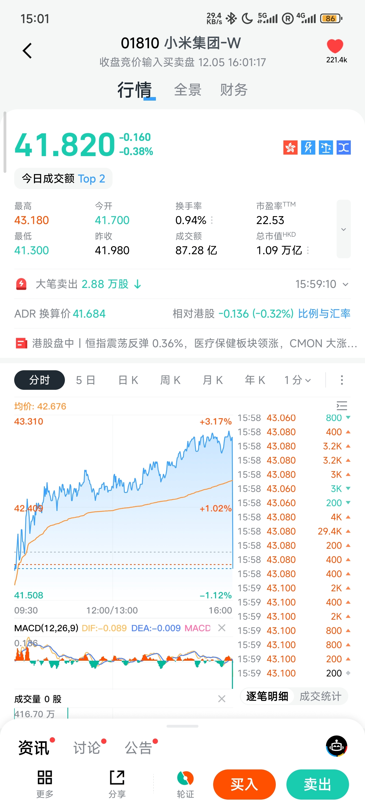 $小米集团-W(HK|01810)$ 竞价水下几秒钟,赶紧截个图送它们,怕小黑找不到黑的