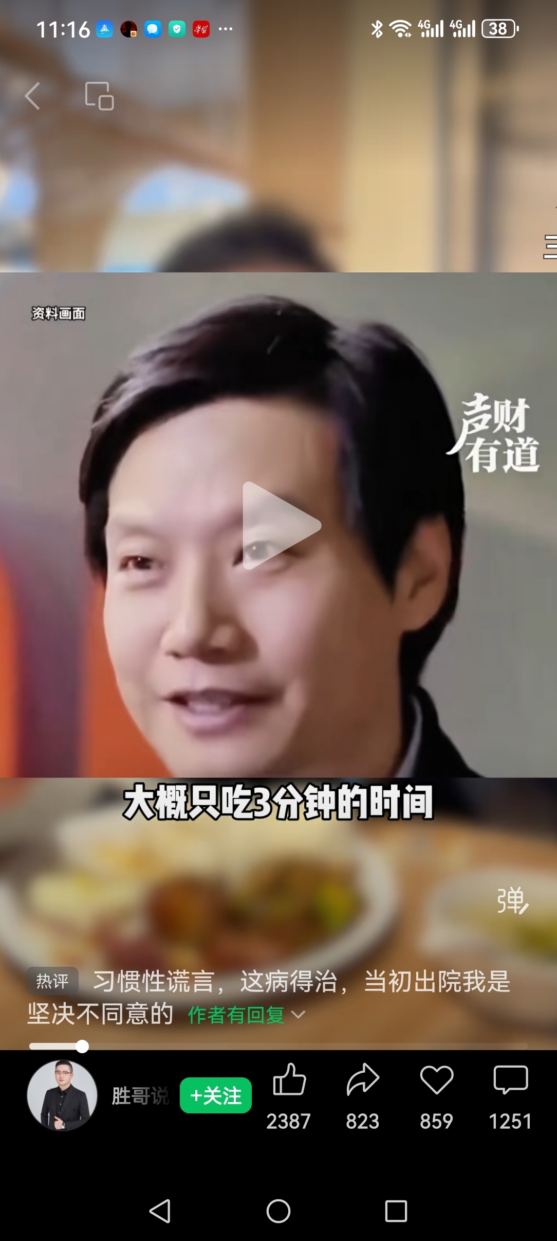 能3分钟吃完一餐饭,应该是不算吃菜时间,不算装饭时间,不算捧碗时间,只算嘴巴叭叭