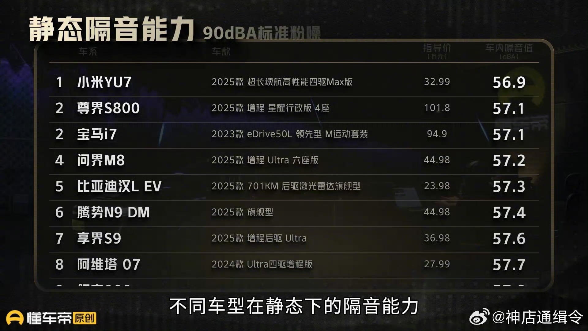 看来懂米帝真的学会了杂粮对比法,纯电和增程比静音