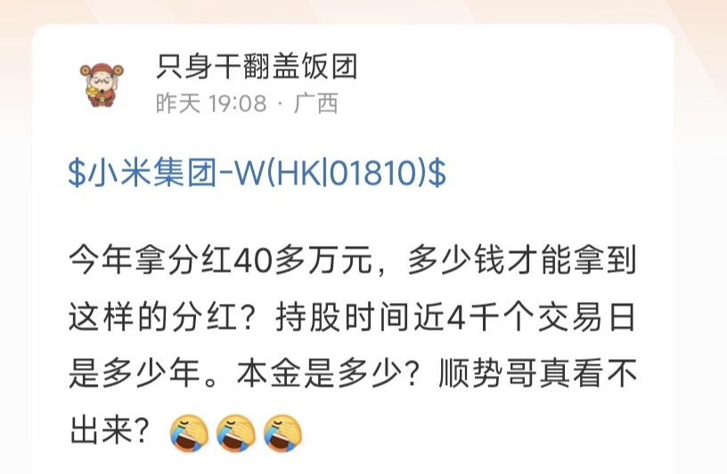 $小米集团-W(HK|01810)$盖饭团有这样的集体风格,不给评论了,急了。