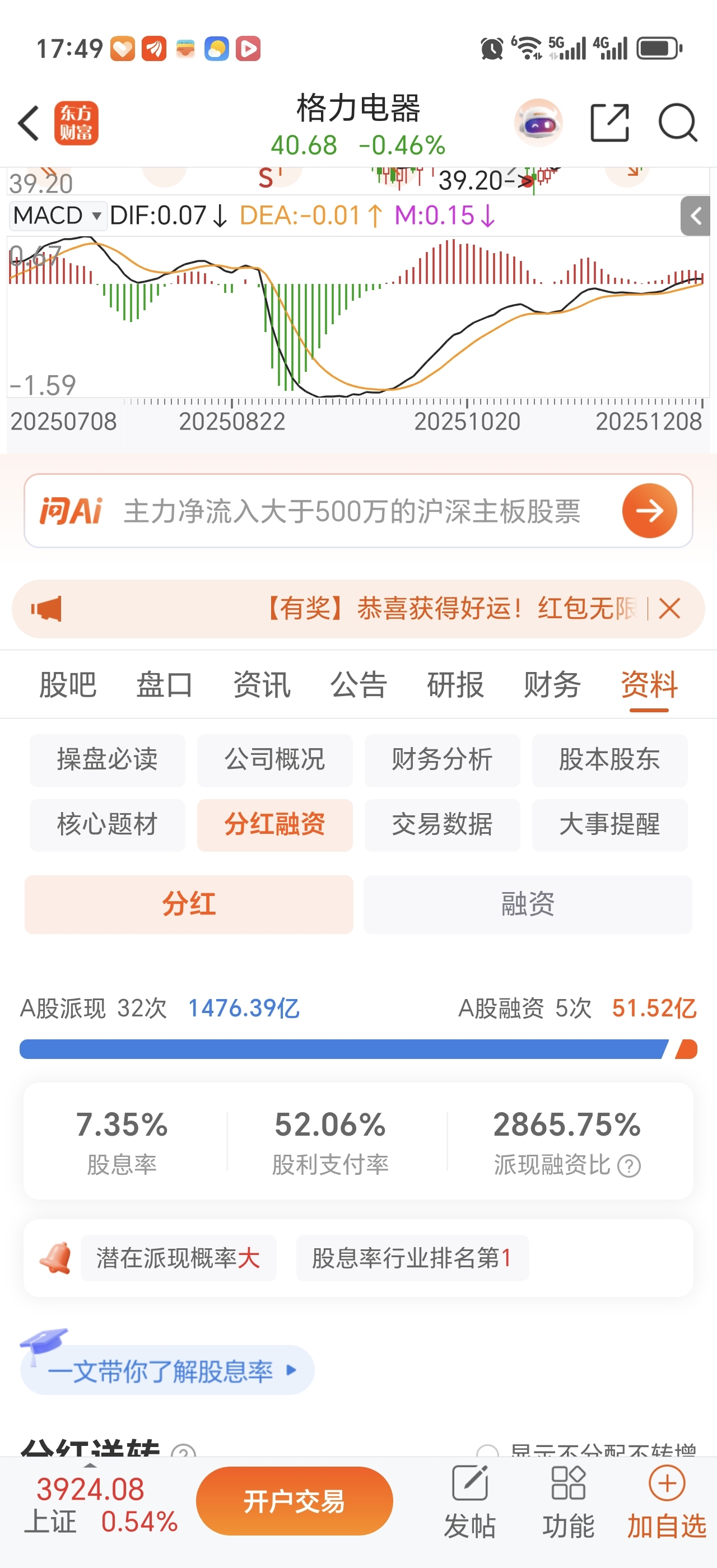 $小米集团-W(HK|01810)$ 一个企业好不好看看给股东的报酬率就知道了。一个分红超过几十倍总融资的企业在国内没几个。