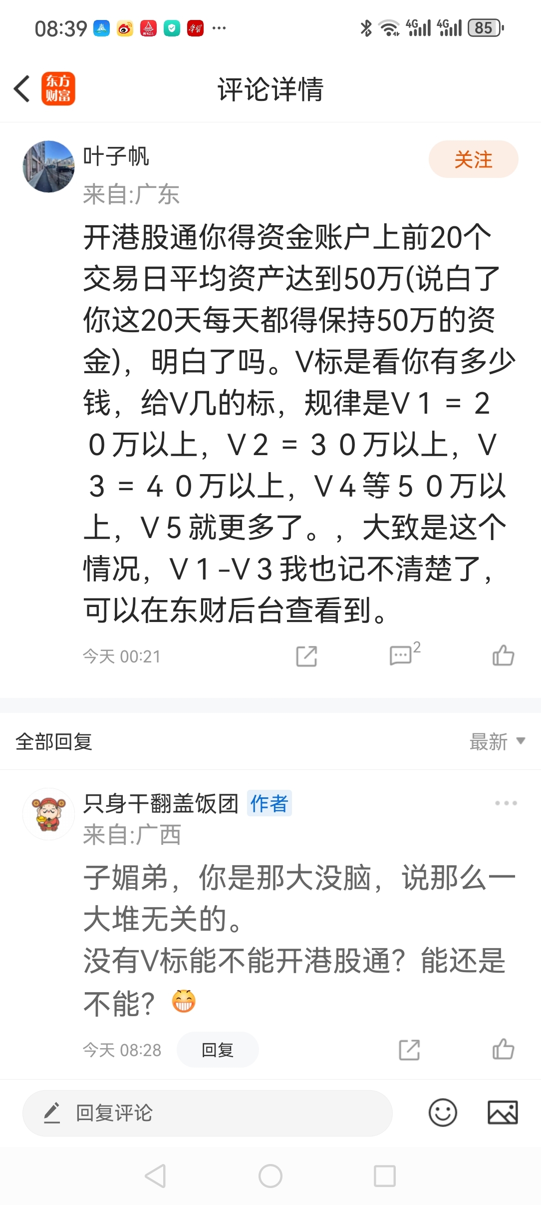 咱就问没有V标能不能开港股通?你正面回答能还是不能不就完了。
