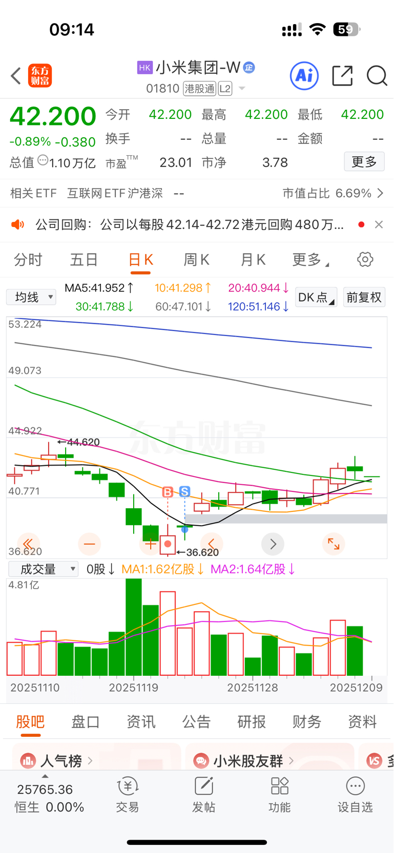 $小米集团-W(HK|01810)$ 我错了,下来接我