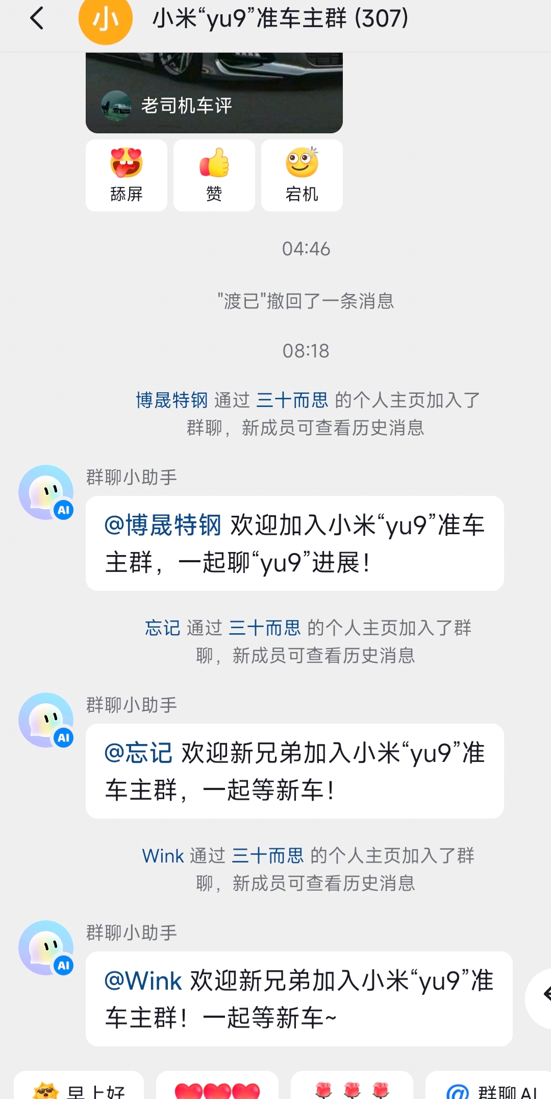 yu9已经很多了组群讨论了,大部分是准车主,一出来就会提车,小米车子太好了