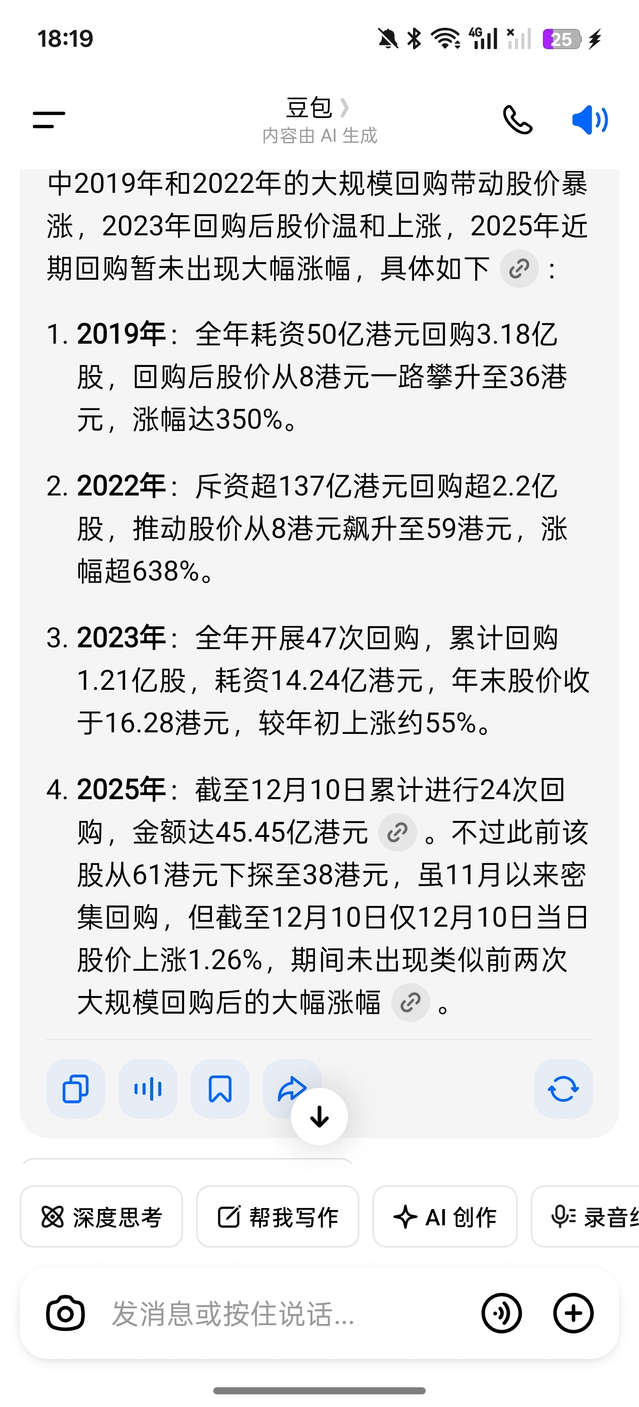 $小米集团-W(HK|01810)$ 小黑子们看看雷布斯历史回购,股价涨幅再来说话吧。今年是有史以来公司回购最多的一年,明年最少看到80