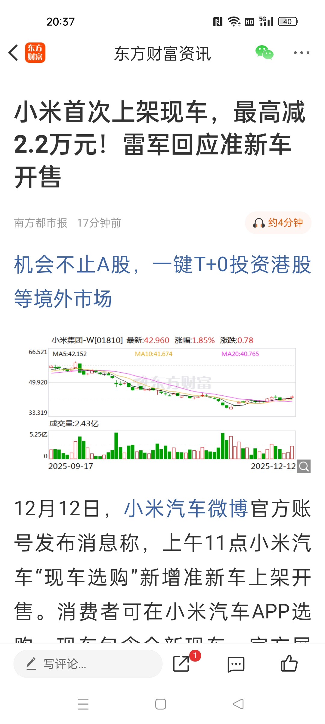 $小米集团-W(HK|01810)$ 米家人们,大利好来了,小米车现在有准现场卖了,大家快去抢啊